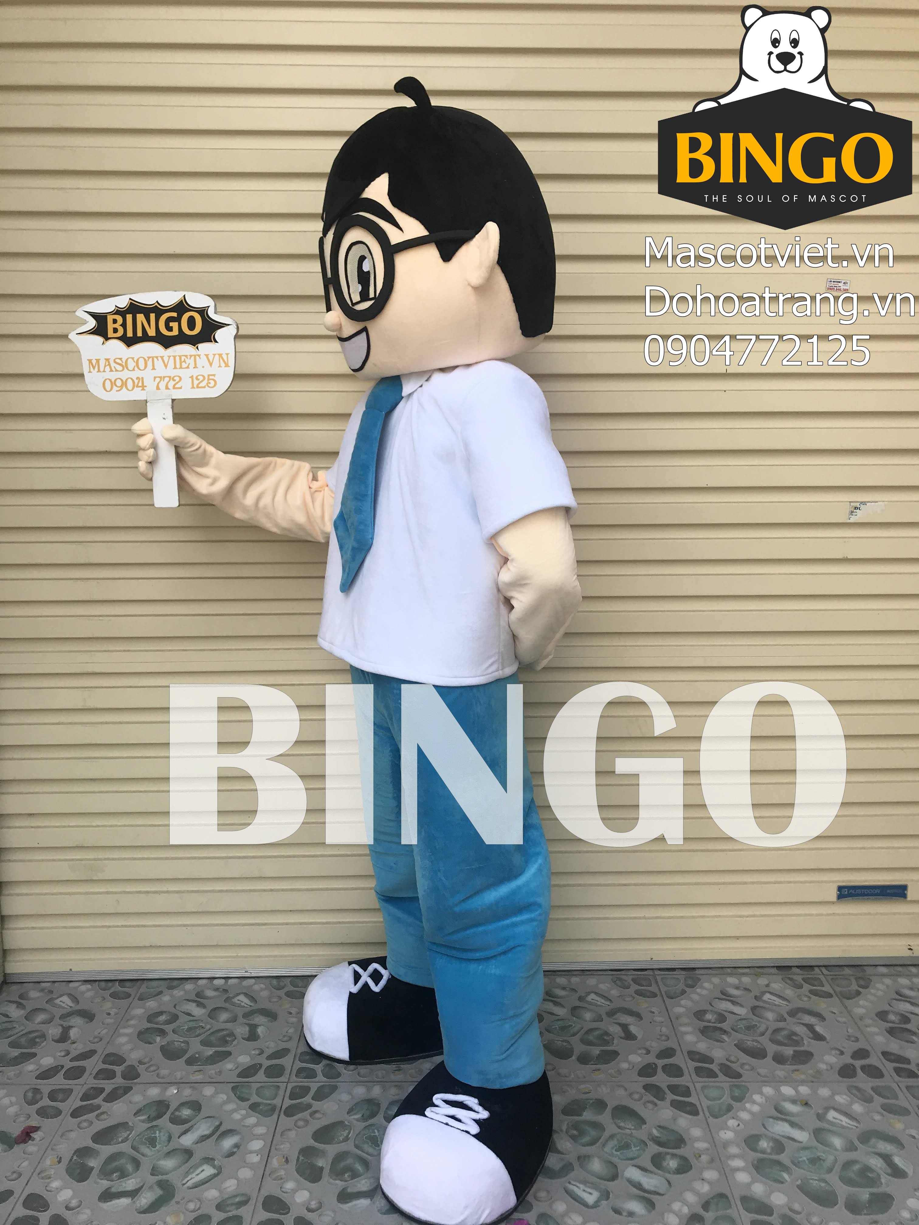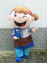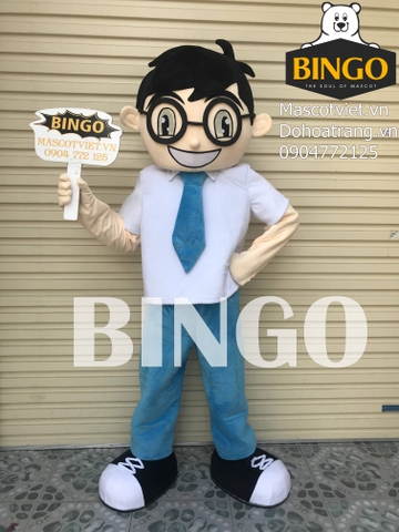 Mascot cậu bé có phần đầu được may bằng mút xốp rất cân đối. Tạo hình mô phỏng một cậu học sinh nhí nhảnh với cái miệng luôn cười.