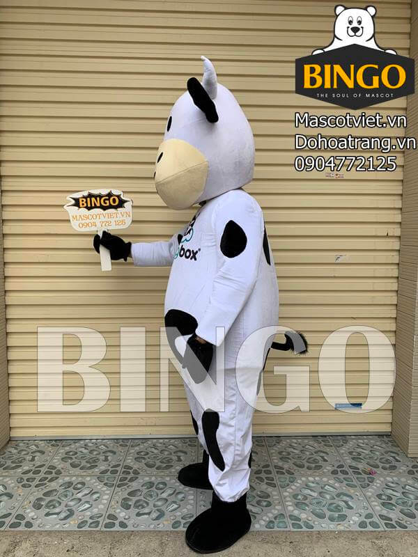 Mascot con bò 12 là sản phẩm được sản xuất từ vải Velbo cao cấp kết hợp mút xốp và cao su. Mascot mô phỏng hình ảnh chú bò sữa đốm đen, thân trắng rất thật mắt, sống động với phong cách dễ thương. Nhờ hình ảnh này, các chương trình, sự kiện của quý vị dễ gây ấn tượng, tạo thiện cảm trong mắt công chúng.