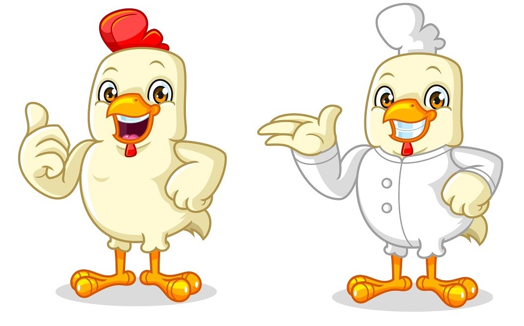 Đặc điểm: mascot gà có đôi cánh màu vàng dưới tay.