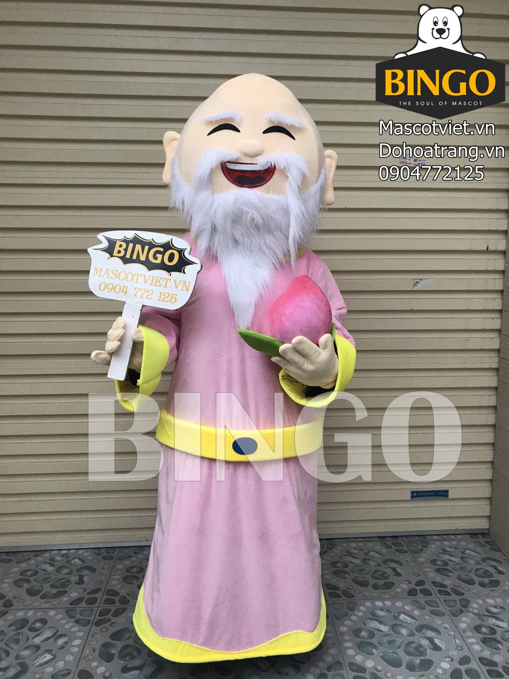Mascot Đa Thọ được trang bị một bộ quần áo hồng viền vàng, chòm râu trắng muốt đặc trưng và kèm theo một trái đào mang biểu tượng của sự trường thọ viên mãn.