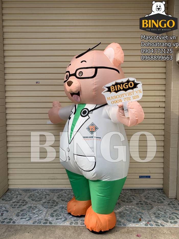Mô tả chi tiết sản phẩm mascot hơi gấu bác sĩ Trung Sơn Pharma