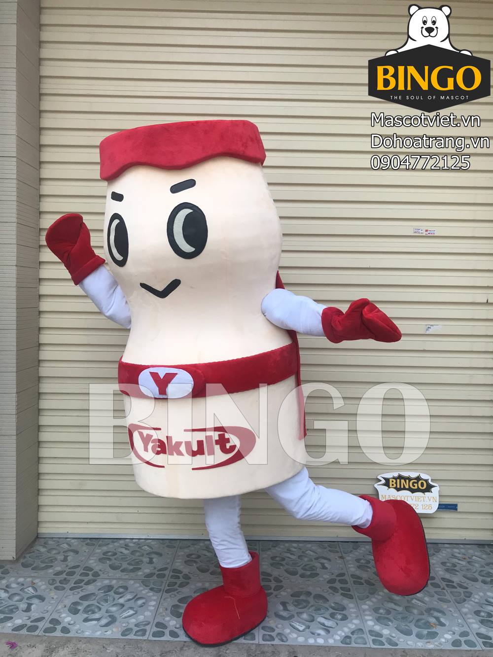 Mascot hộp sữa yakult có tạo hình y hệt một chai sữa yakult thực tế. Sản phẩm giống từ màu sắc cho tới đường nét.