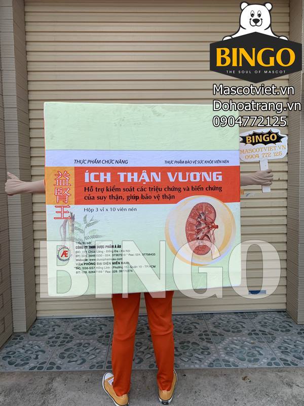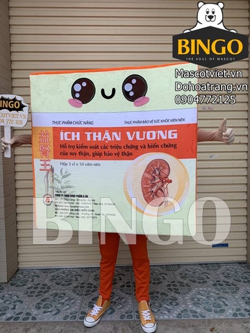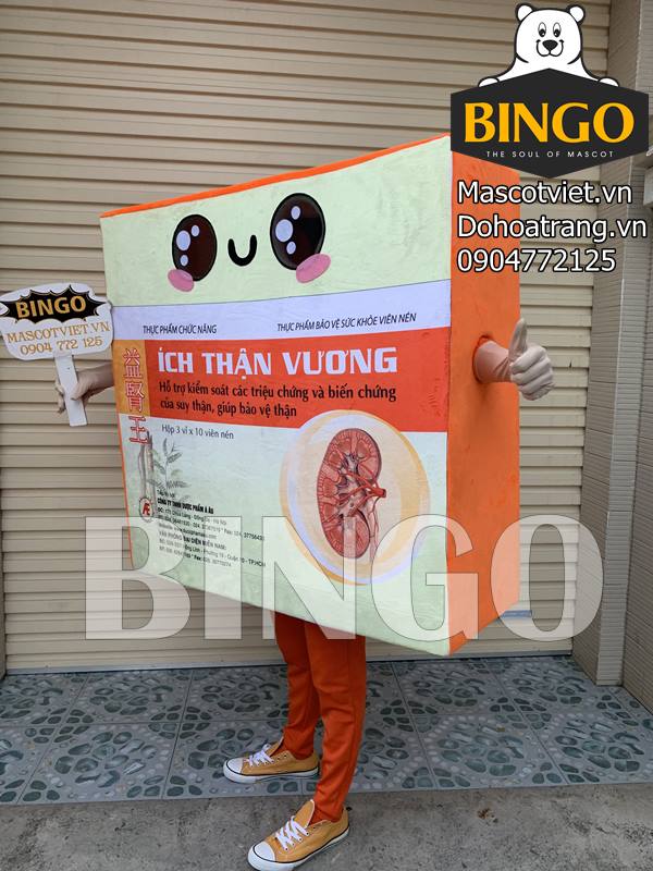 Hơn nữa, hai bên của Mascot Hộp Thuốc này được thiết kế hai lỗ hổng để người mặc có thể thoải mái duỗi tay của mình trong các sự kiện cần sự tương tác với khách hàng.