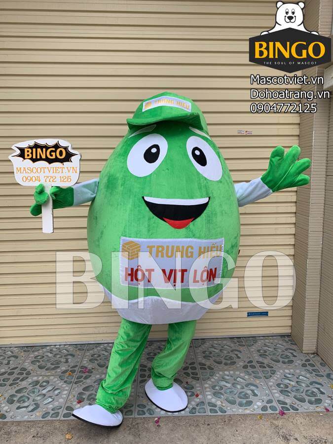 Mascot hột vịt lộn mô phỏng hình ảnh một trứng vịt nhưng có mắt, mũi, miệng và tay chân. Gam màu xanh non sẽ giúp bạn nhanh chóng thấy dễ chịu, dịu mắt. Hãy gọi cho chúng tôi theo số 0904772125 để có được thông tin hay về sản phẩm này bạn nhé!