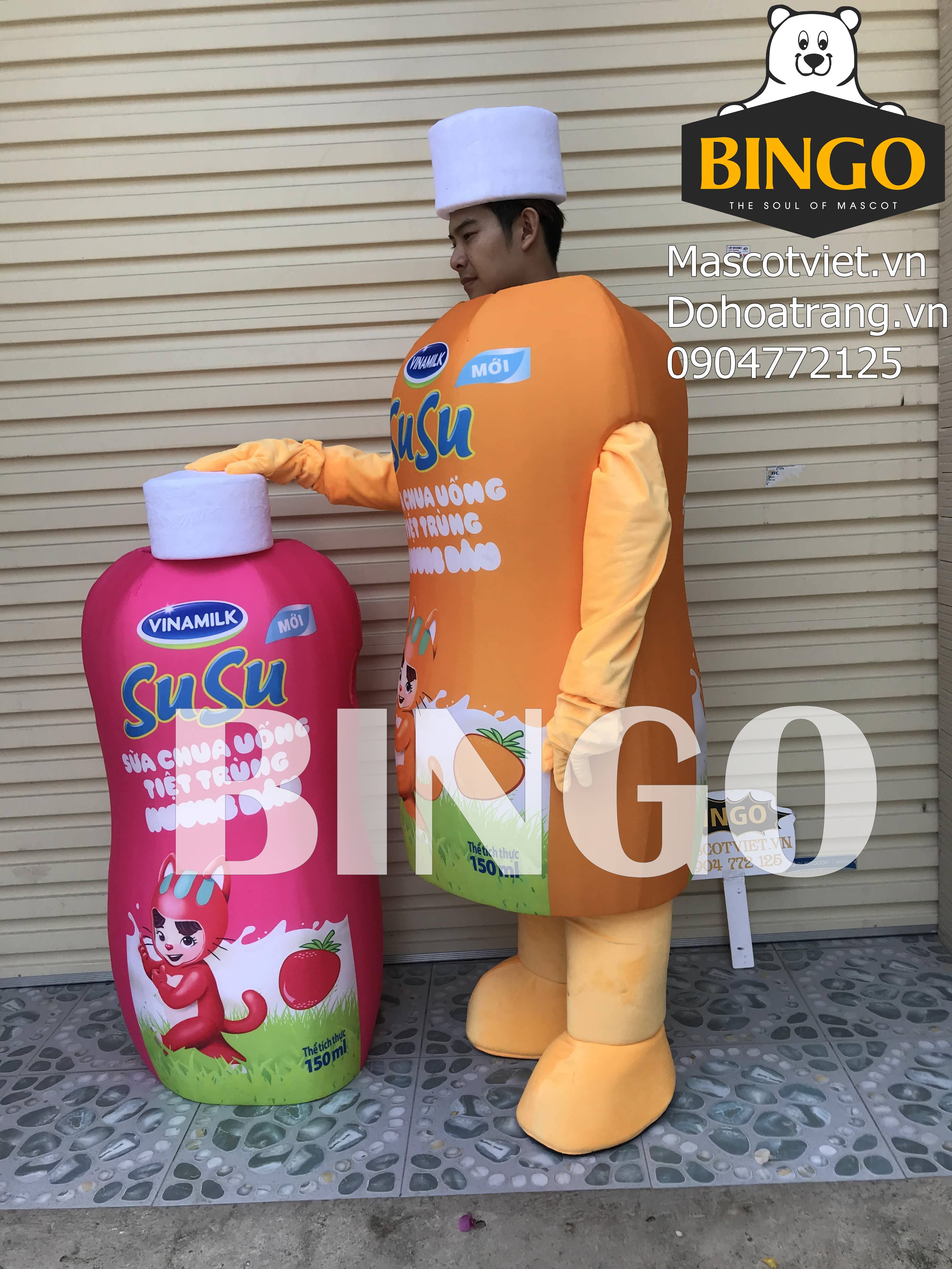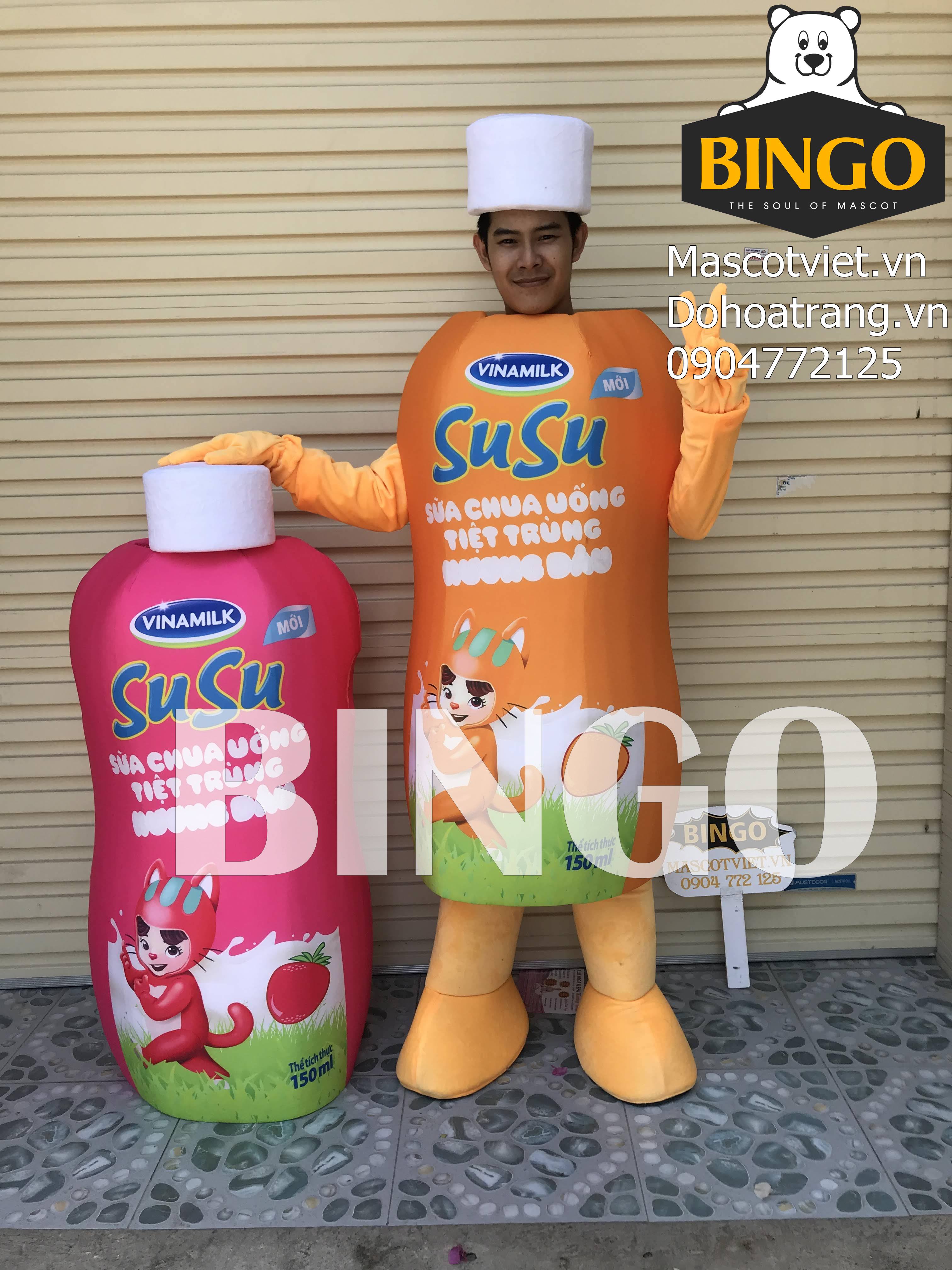 Mascot mô hình chai sữa Susu mô tả hình một chai sữa susu chân thực, sống động y như thật. Sản phẩm có “công lớn” trong việc đẩy mạnh doanh thu, mang lại ấn tượng tốt đẹp, thân thiện đối với các khách hàng của nhãn hàng này