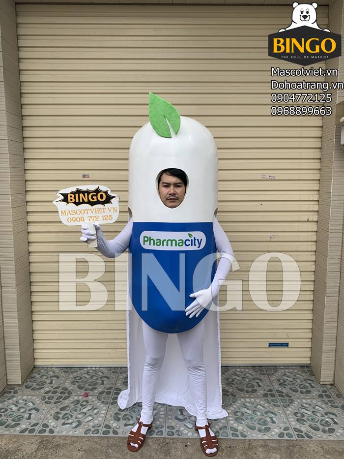 Để cho sản phẩm bớt đơn điệu, nhàm chán, Mascot mô hình viên thuốc Pharmacity thiết kế dạng hở, để lộ đôi tay là đôi chân được che phủ bởi bộ đồ trắng bó giúp dễ dàng vận động. Đằng sau là một chiếc áo choàng trắng khiến ta liên tưởng tới vị anh hùng cứu bệnh cho mọi người.