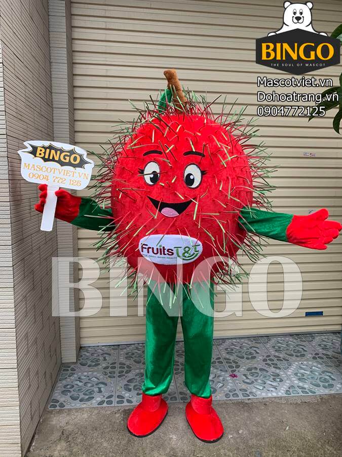 Mascot trái Chôm Chôm đang được khá nhiều đối tác/khách hàng của Bingo yêu thích. Sản phẩm mô phỏng hình ảnh trái Chôm Chôm đã chín, có nhiều gai mềm nhỏ vô cùng chân thực, sống động. Do đó, nhân vật này sẽ gây ấn tượng mạnh mẽ khi xuất hiện ở bất cứ chương trình nào!