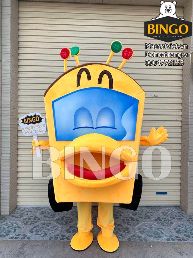 Mascot xe Bus hiện được rất nhiều khách hàng của chúng tôi yêu thích. Sản phẩm mô phỏng hình ảnh một chiếc xe Bus với màu sắc sặc sỡ, có chân tai và khuôn mặt biết cười cực độc đáo